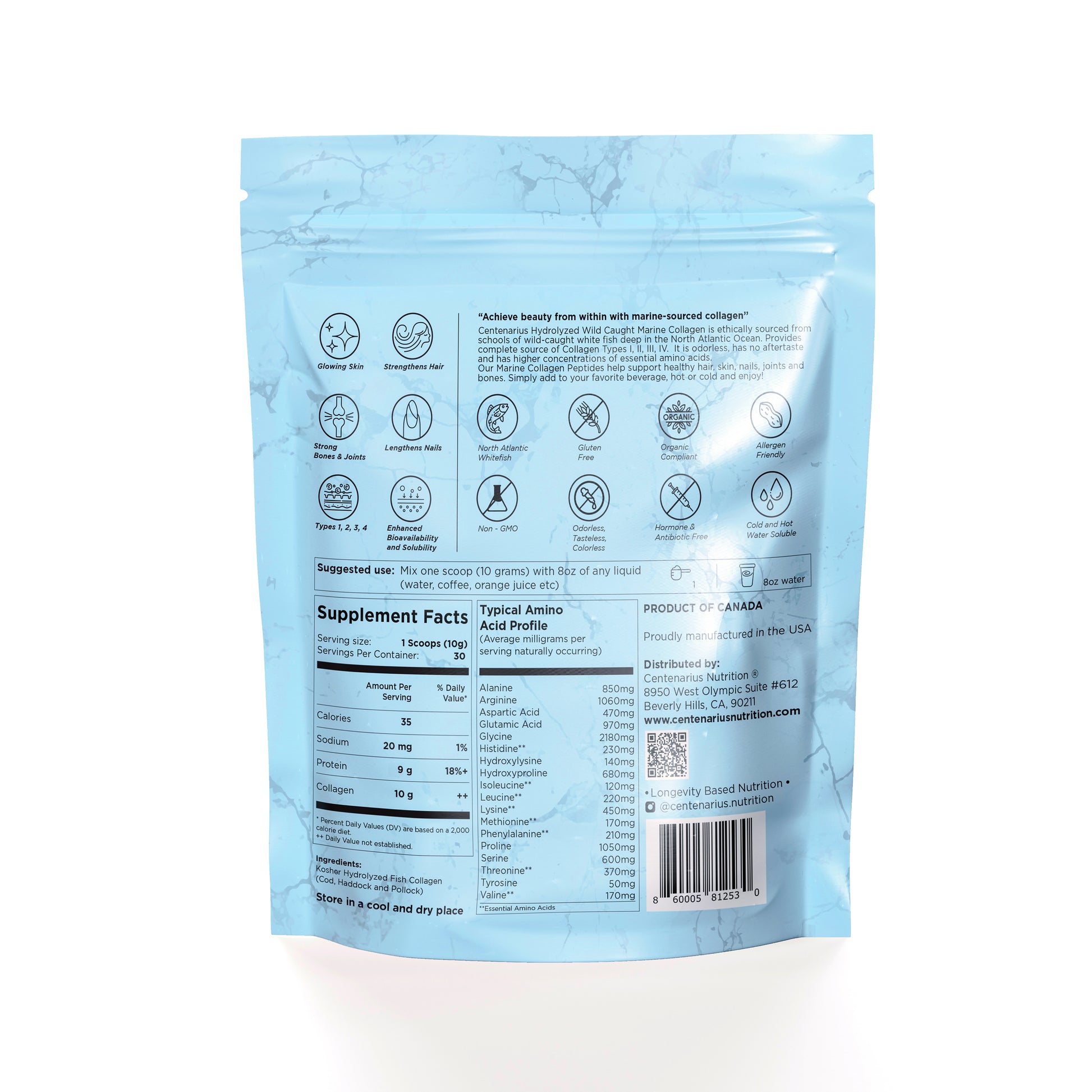 Mix our supplement by the scoop quickly and easily into hot or cold beverages such as coffee, tea, juices, or smoothies daily to experience the benefits. It can also be added to some cooking and baking recipes. Centenarius Marine Collagen is formulated to support healthy hair, glowing skin, strong nails, and flexible joints and bones. Enjoy it as a flavorless daily ritual from beneath the sea designed to offer a depth charge for both health and beauty.