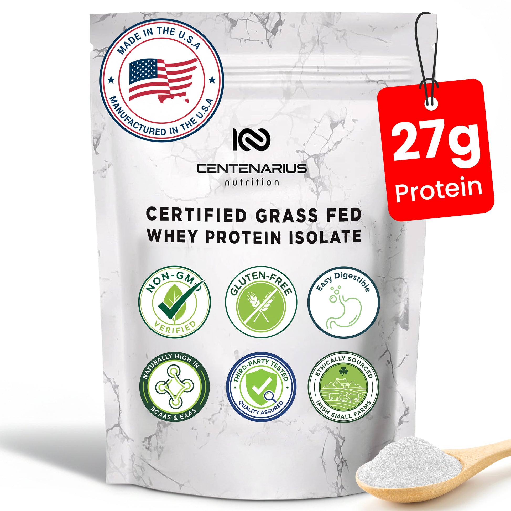 Our protein is tested by independent third parties to ensure unmatched purity, safety, and effectiveness. Additionally, Centenarius proudly holds an Animal Welfare Certificate, proving our commitment to ethical sourcing from pasture-raised, grass-fed cows in Ireland.