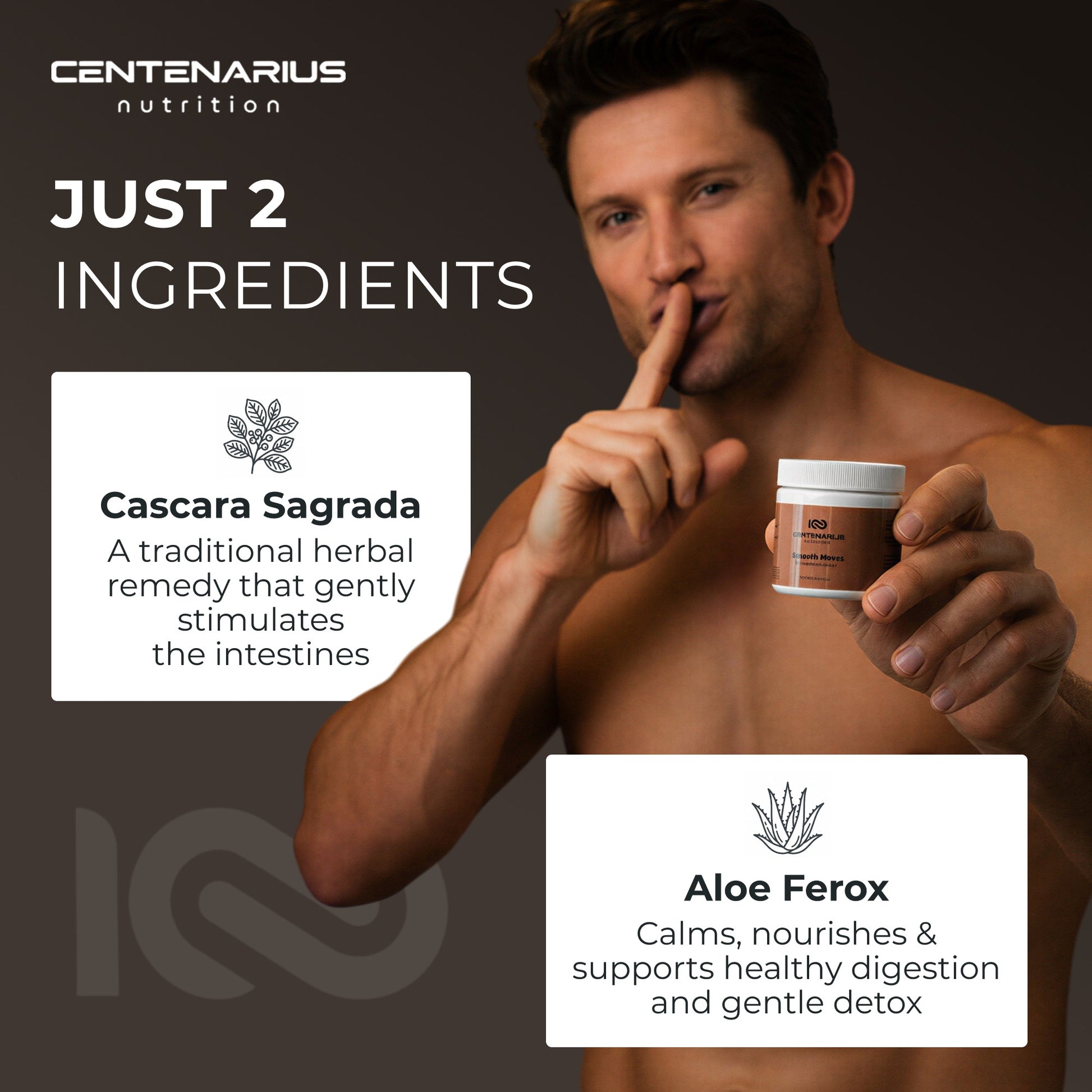 The Smooth Moves formula works by combining two key botanicals: Cascara Sagrada and Aloe Ferox. Cascara Sagrada contains natural compounds that gently stimulate the muscles of the intestines, promoting regular and smooth bowel movements without harsh effects. It signals the colon to contract, making it easier for waste to move through the digestive system. Meanwhile, Aloe Ferox is rich in bioactive nutrients and has soothing, anti-inflammatory properties that calm the intestinal lining and support hydration within the digestive tract. It also aids in detoxification by helping the body flush out toxins more effectively.